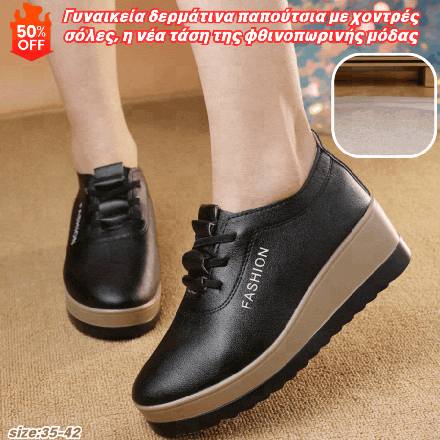 🔥Ειδική προσφορά🔥【35-42】Γυναικεία δερμάτινα παπούτσια με χοντρές σόλες, η νέα τάση της φθινοπωρινής μόδας