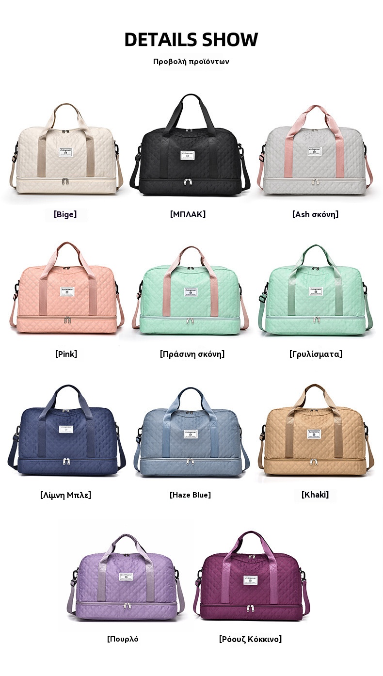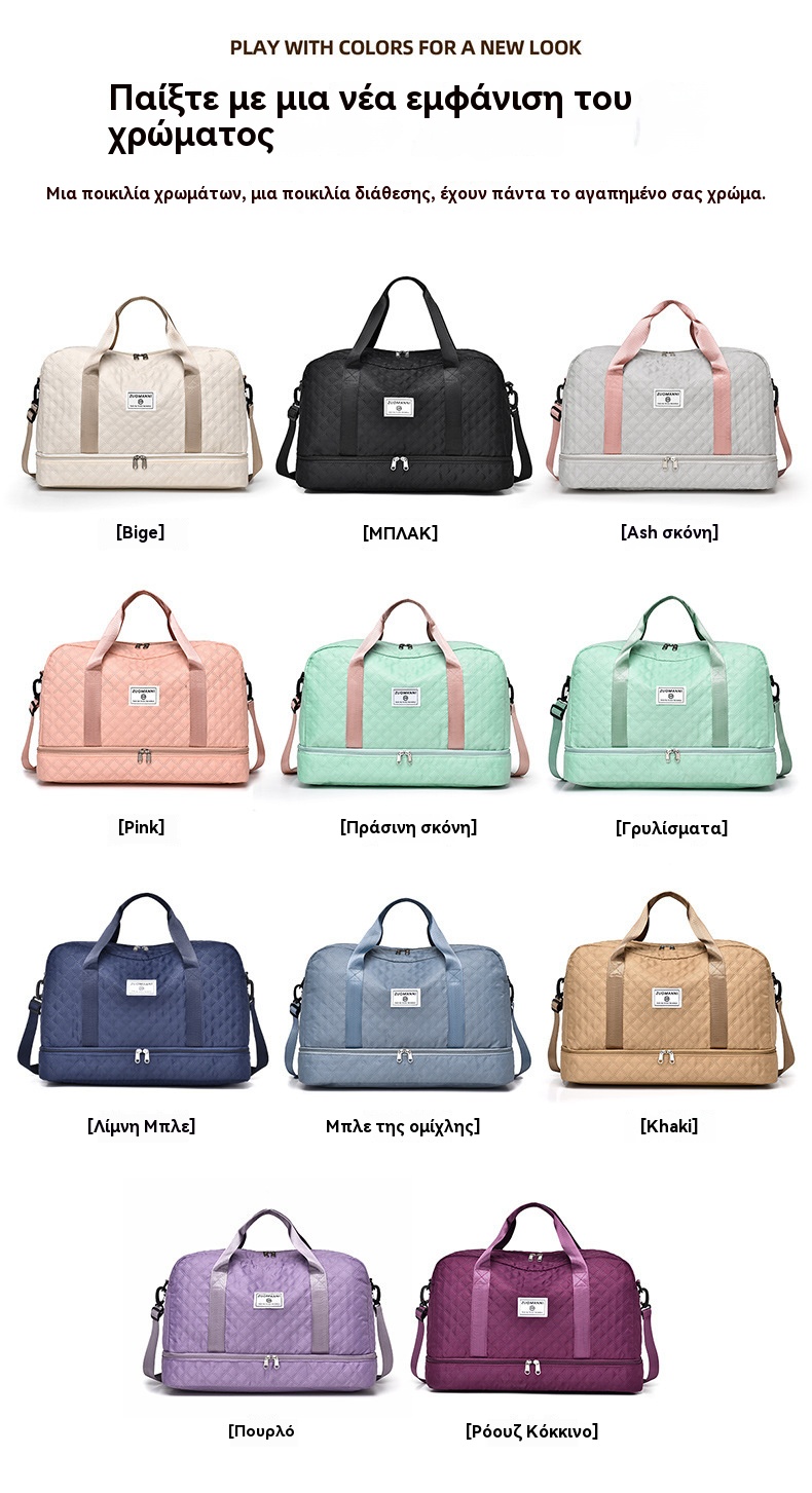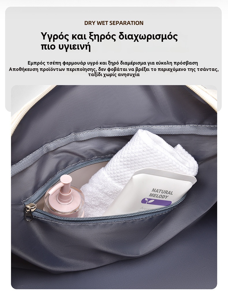 🔥👜Κομψή τσάντα ταξιδιού μεγάλης χωρητικότητας με σχεδιασμό διαχωρισμού για υγρή και στεγνή χρήση, κατάλληλη για γιόγκα και γυμναστική