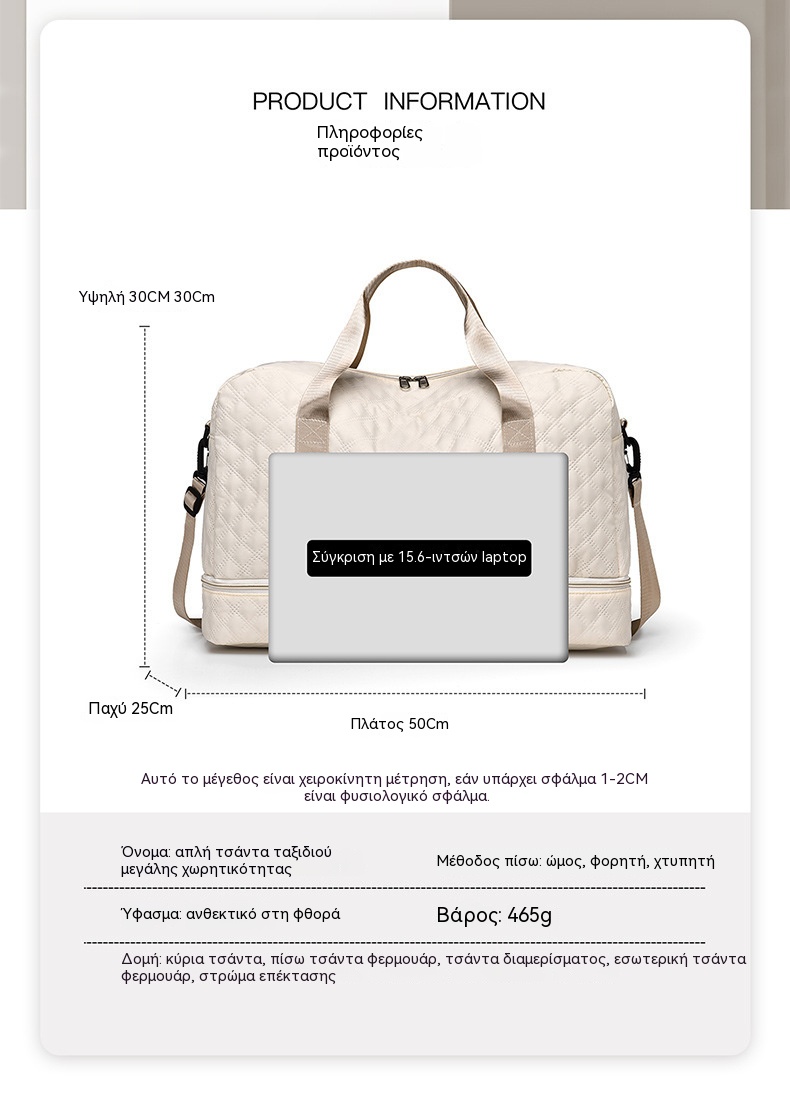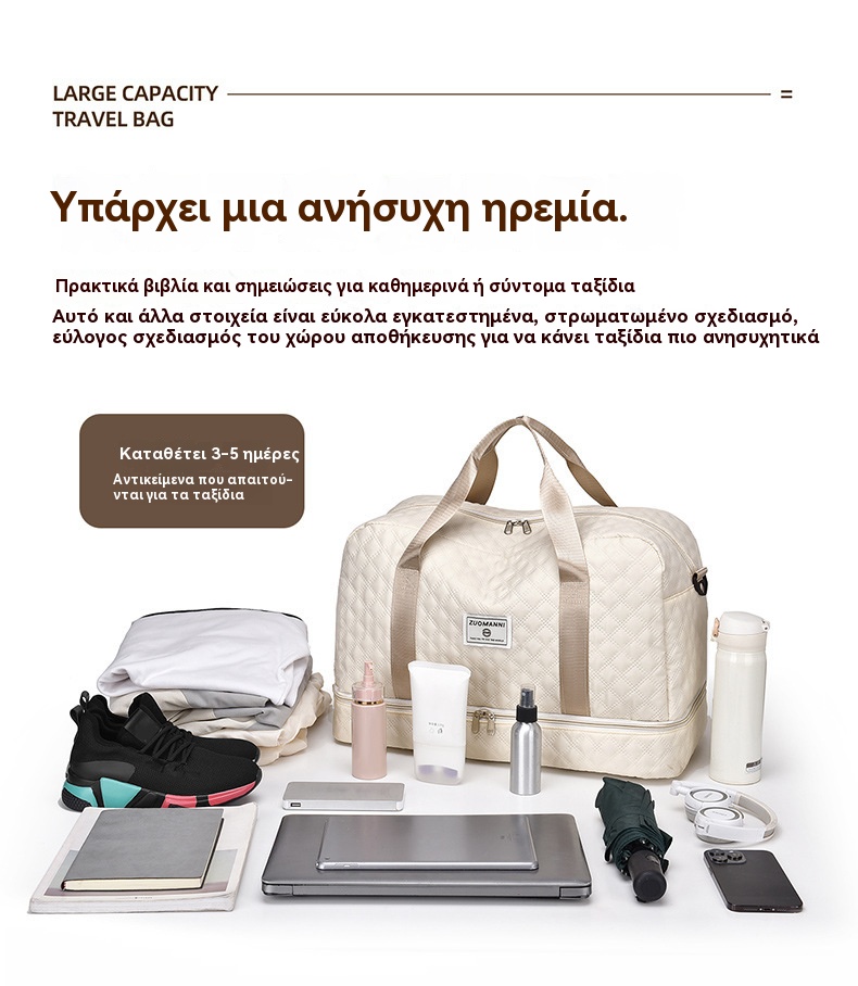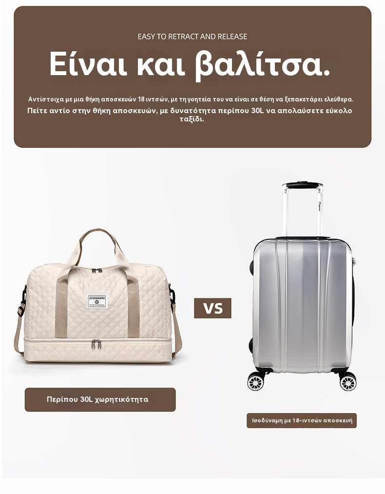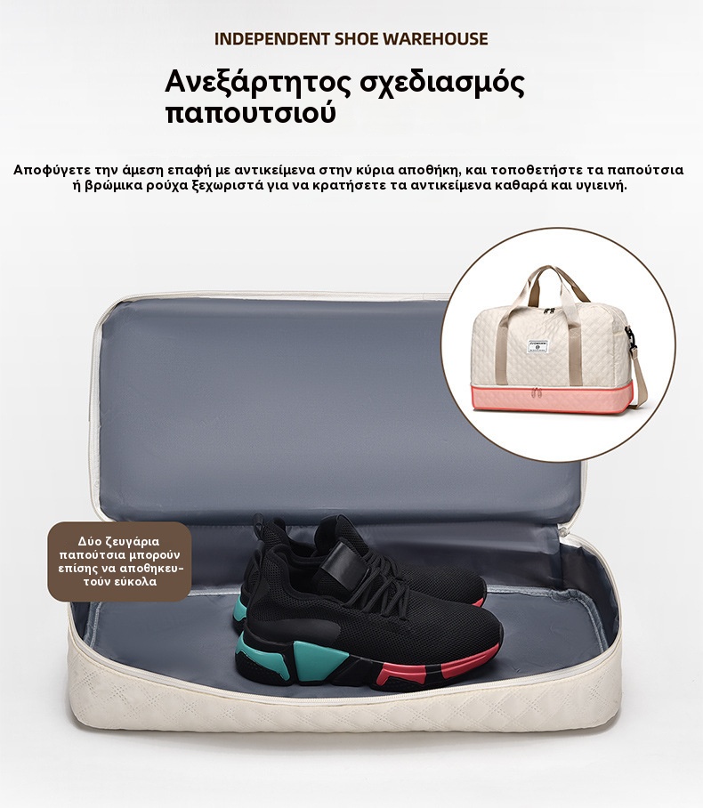 🔥👜Κομψή τσάντα ταξιδιού μεγάλης χωρητικότητας με σχεδιασμό διαχωρισμού για υγρή και στεγνή χρήση, κατάλληλη για γιόγκα και γυμναστική