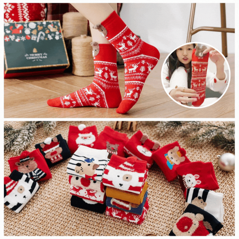 🔥【10 ζευγάρια,Μεγάλες Προσφορές】🔥Χριστουγεννιάτικες κάλτσες 2025, γυναικείες κάλτσες με σχέδια ζώων για το φθινόπωρο και τον χειμώνα, με σχέδια κινουμένων σχεδίων